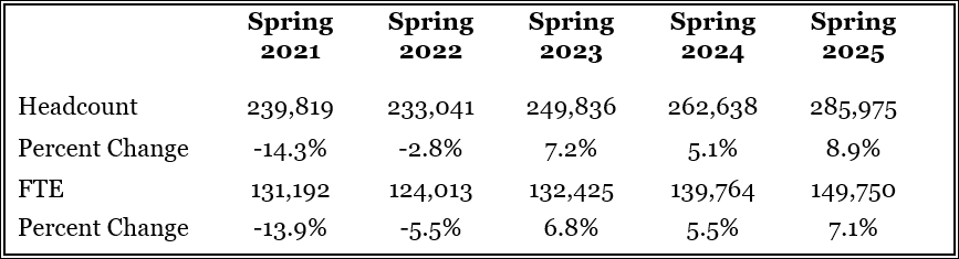 Additional findings from the Spring 2025 Enrollment Report include: