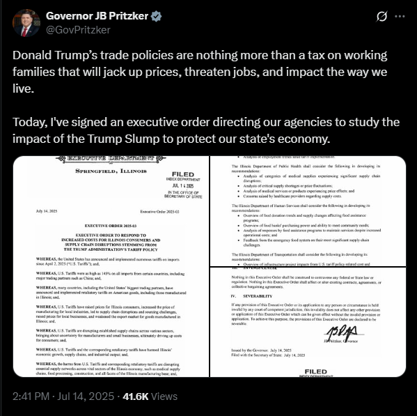 - Chicago Crains: Pritzker signs executive order to analyze tariff impact on Illinois