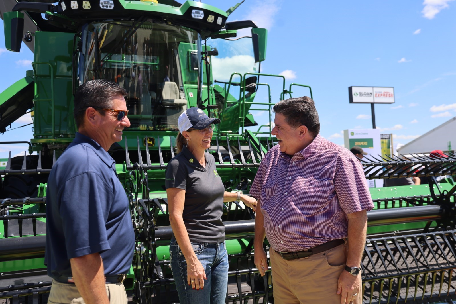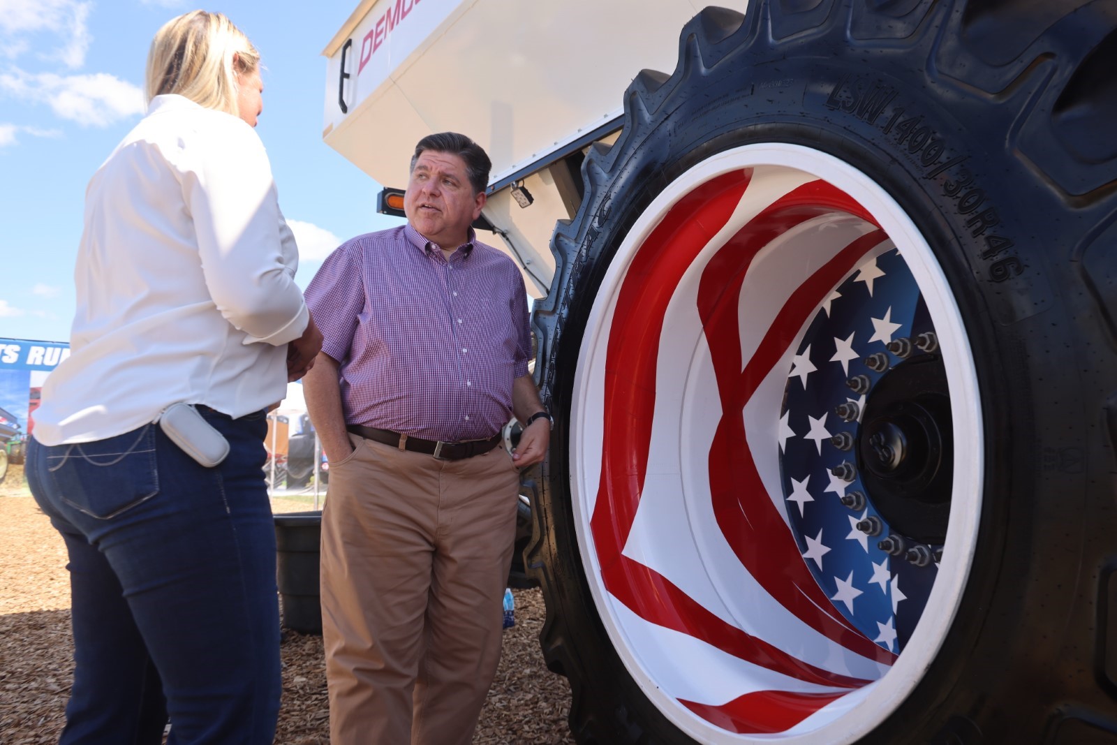 Gov. Pritzker and Jerry Costello II, Director of the Illinois Department of Agriculture, meet with exhibitors at the 2025 Farm Progress Show in Decatur after announcing a $2 billion investment from Cronus Chemicals LLC (Cronus) to construct a new fertilizer production facility in Tuscola. (Office of the Governor)Gov. Pritzker speaks with an exhibitor at the 2025 Farm Progress Show in Decatur. (Office of the Governor)